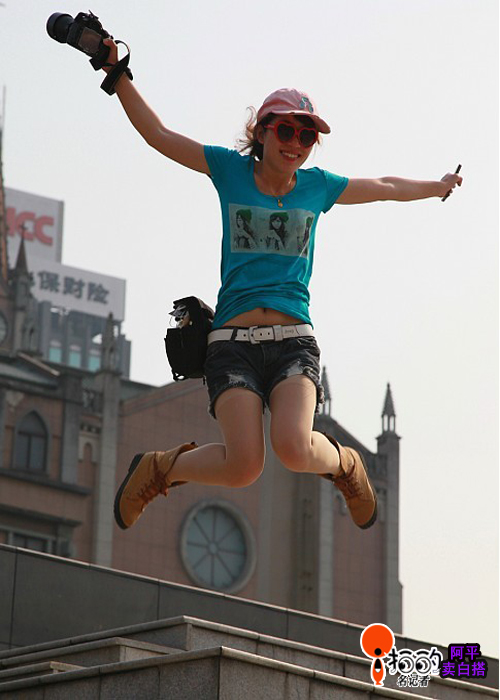 周六在天一廣場街拍,休息間隙,一美女攝友縱情一躍,左手是iPhone手機,右手是相機,迷倒無數男攝友。