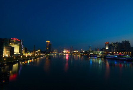 上周末天氣晴朗,準備去外灘拍攝晚霞,但因云彩很少,沒能見到理想的霞光。因此,只得等待上燈時分,拍攝甬江燈火了。拍攝回來在電腦上一看,還不錯!