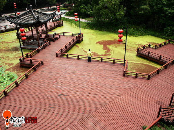 古城墻中有園林,園林縱貫荷花池,池中浮萍自在游,好似一幅美景圖。