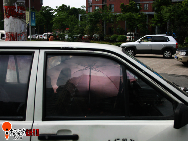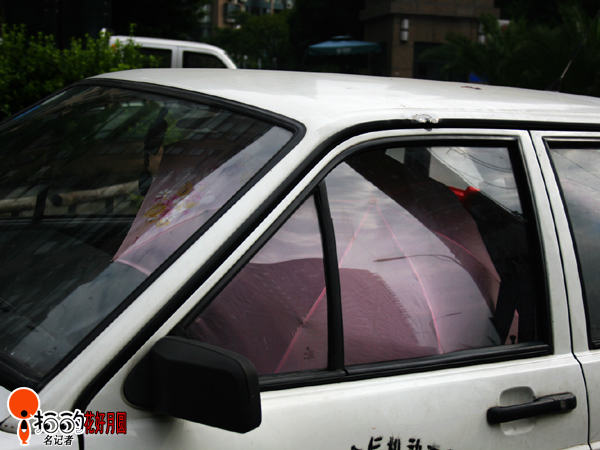 這持續(xù)的高溫天,人受不了,這車也受不了,瞧這車,車主把傘撐到了車里給車放防曬。