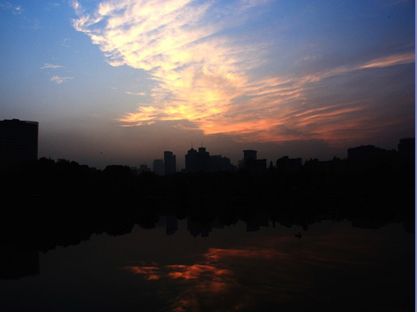 傍晚在月湖拍照,出片后才發現月湖空中的云彩呈現出一只“鳳凰”的形態,它伸展翅膀,頭部筆直向前,姿態瀟灑地翱翔在霞光中。短暫的路過,一場美的邂逅。