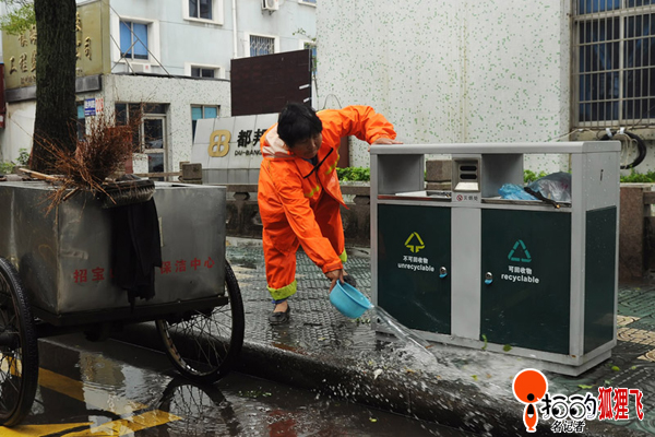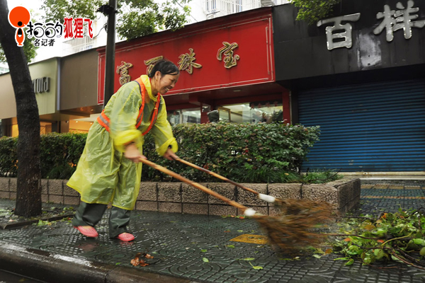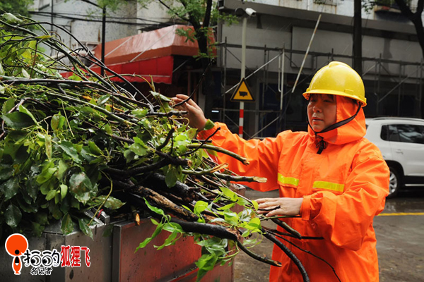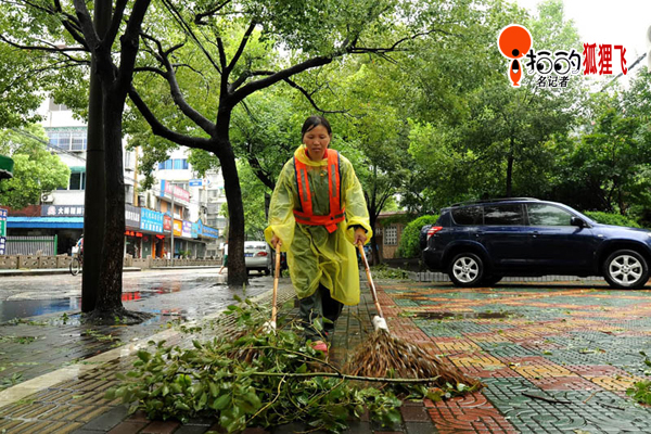 8月8月寧波鎮海街頭,由于受強臺風“海葵”影響,街頭一片狼藉,這下忙壞了各清潔工人,他們一清早就開始掃垃圾、清樹枝、搬路礙了,圖為清潔工人們忙碌的身影。
