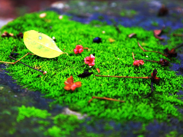 :雨后清新,翠意戀綠,一葉落紅,是秋滿地。
