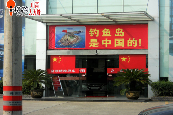 理性愛國,釣魚島是中國的。余姚潭家嶺西路上的一家4S店,門口羅雀。