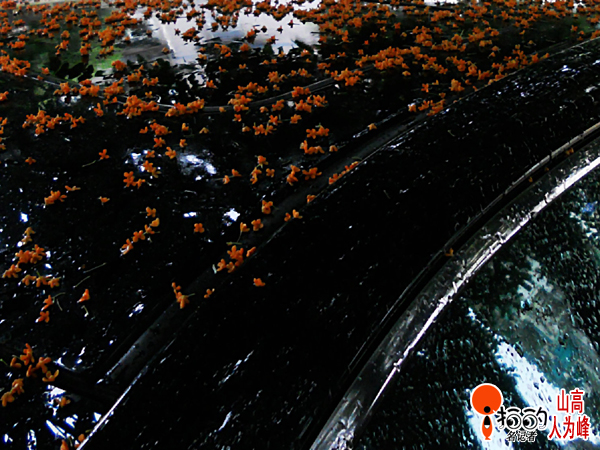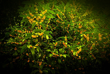前夜秋風雨,吹落金桂花,車頂滿黃金,一路飄幽香。