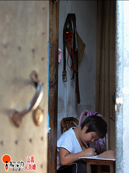 假日里,小女孩依然在家門口認真的寫著作業……