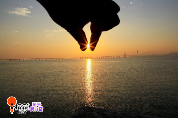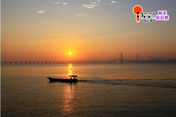 象山港大橋邊漁民頂著旭日迎著海風出海捕魚,多么美好的一天!