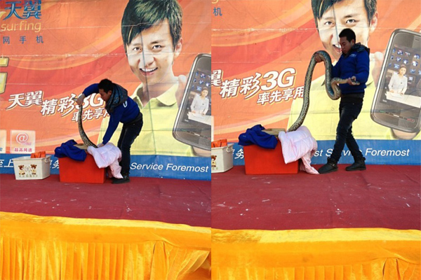 昨日下午,路過亞細(xì)亞步行街見到一生猛“尤物”,膽小者勿看!