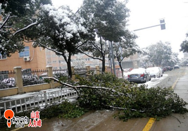 2013、1、5,小寒,北國風光遇見江南雪,雪飄甬城壓落樹斷枝,傷不起......