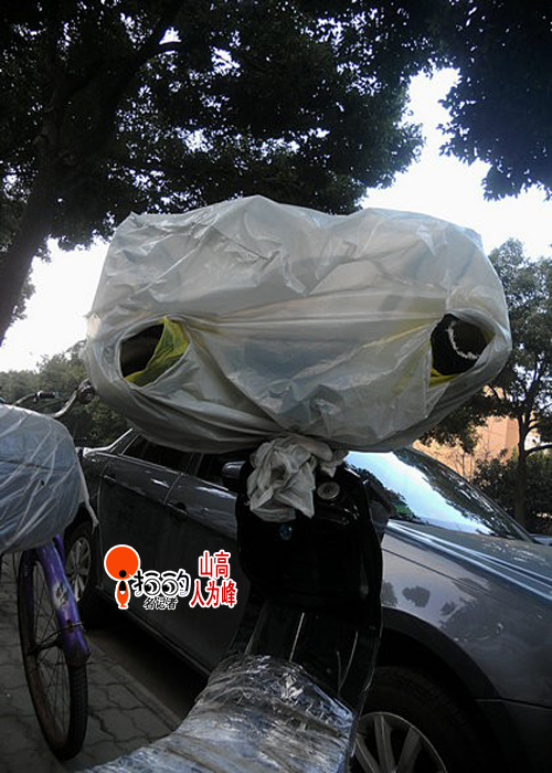 2013年1月18日,晴。三九里寒冬的清晨,冷啊!菜場路邊的一輛電動車上自制的防寒“裝備”到很簡單實用,咋一看,像外星人的“怪獸”有木有......