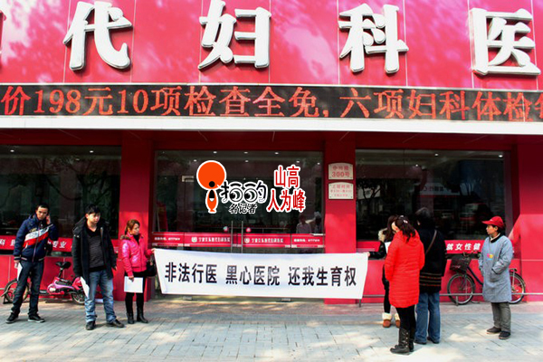(2013年1月24日上午,江東中興路一家醫院的門口有江西人(魏13567486881)拉橫幅:要求生育權......