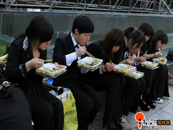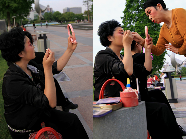 昨天下午(5月5日),中山廣場(chǎng)群眾文藝演出前拍攝的照片,演員們正在化妝的場(chǎng)景。