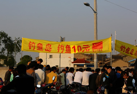 街頭叫賣:釣魚島大量釣魚,只要10元夠了。哈哈,商家生財有道!