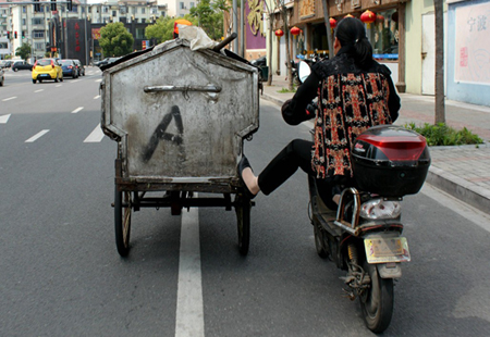 昨晚(5月9號),一對老人在中山廣場看完“天然舞臺”演出后,牽著手,扛著凳子從解放橋走回家。
