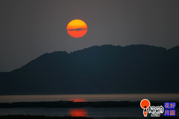 黃昏,太陽(yáng)西下。畫(huà)面中出現(xiàn)一個(gè)紅紅的“咸鴨蛋”,感覺(jué)特別美麗!