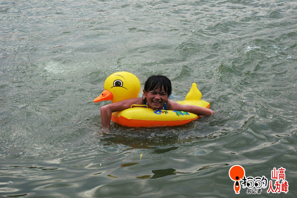 2013、7、9、晴。消夏解暑,一水清涼,“小黃鴨”嬉水,童趣滿湖。
