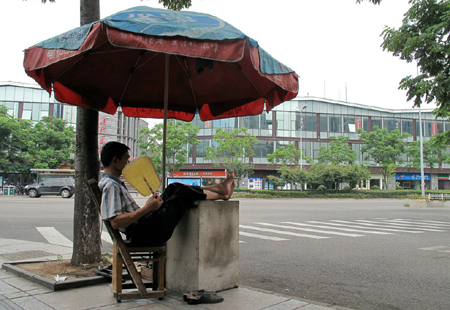 炎炎夏日有清風(fēng),綠蔭樹下納夏涼,悠姿閑坐消殘暑,鄰里和睦拉家常。