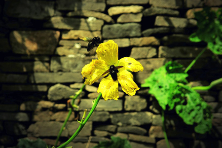 院落里,南瓜花兒,悄悄地綻放,燦燦金黃,蜂兒游歷其中,趨之若鶩,陶醉芬芳,初秋的風,一股甜潤的味兒.....