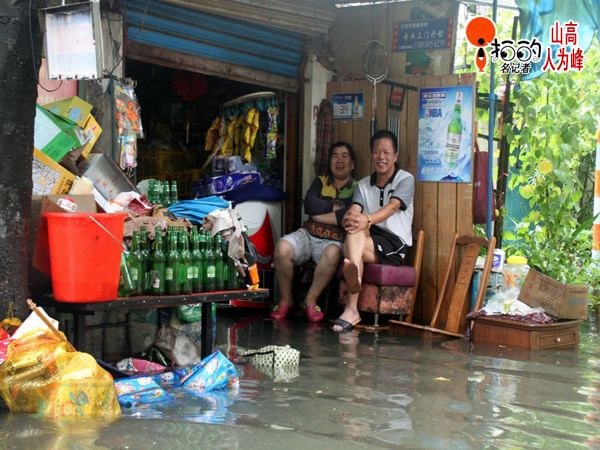 “水漫金山”,大水無情,“淡定”守店,笑對生活。