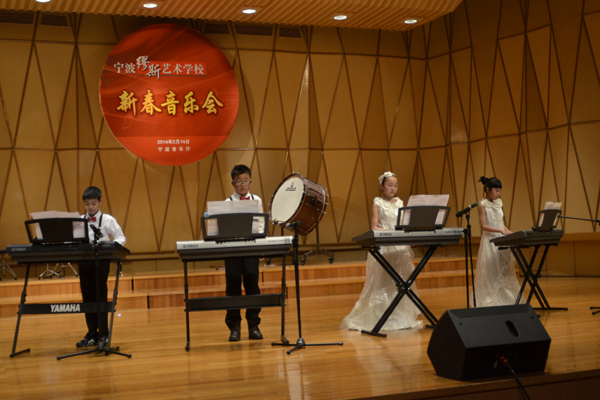 2月14日晚,寧波市繆斯藝術(shù)學(xué)校在寧波市音樂廳舉辦“繆斯藝術(shù)學(xué)校新春音樂會”,整臺音樂會有《拉德斯基進行曲》、《玫瑰狂歡節(jié)》等世界名曲,又有《上海灘》、《江南style》等耳熟能詳?shù)臉非⒓友莩龅挠薪?00人,年齡最小的為6歲。