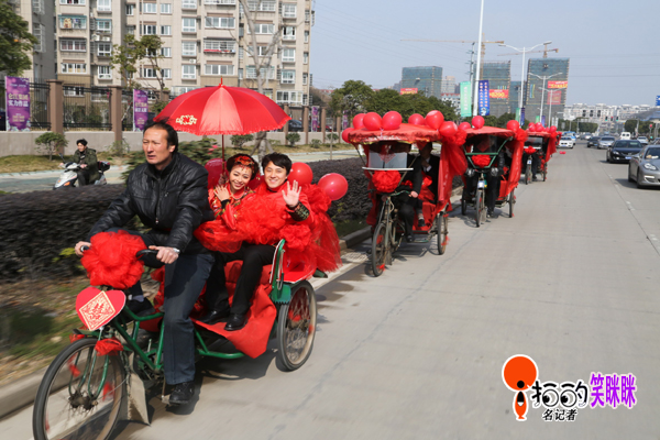 2014年,2月22日來自遼寧的小伙子畢亮用裝扮漂亮的三輪車娶北侖姑娘鮑如意,既倡導了綠色環保又喜慶拉風,每到一處吸引市民的眼球!