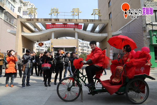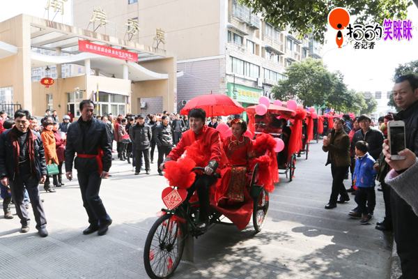 中國(guó)寧波網(wǎng)“i拍”記者笑瞇瞇:2014年,2月22日來(lái)自遼寧的小伙子畢亮用裝扮漂亮的三輪車娶北侖姑娘鮑如意,既倡導(dǎo)了綠色環(huán)保又喜慶拉風(fēng),每到一處吸引市民的眼球!