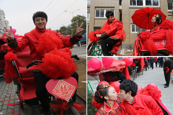 拉風!遼寧小伙環保三輪車隊迎娶北侖新娘