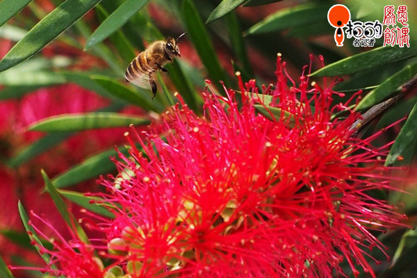 你見過開紅花的羅漢松嗎?我也是第一次見到羅漢松開紅花! 連小蜜蜂也感到新奇,紛紛爭相飛舞釆蜜!