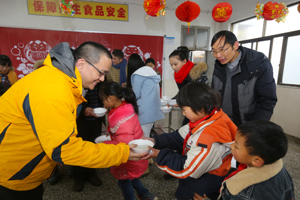 中國寧波網“i拍”記者竺仕寶:今早,四明山鎮小學來了一群愛心義工,他們千里迢迢驅車趕到老區。來自香格里拉大酒店的義工們帶來了制作湯圓的材料糯米粉、白糖、芝麻與山里的孩子們一起搓湯圓吃湯圓,提前感受濃濃的年味。