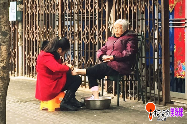 為老母親洗個腳。(2015.2.25攝于溪口鎮上)