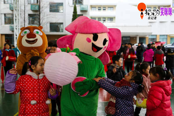 2月28日下午海曙區南門街道郎官社區里好不熱鬧,小朋友提燈籠,老人敲腰鼓,大頭娃娃、喜羊羊齊賀歲,鄰里和諧幸福鬧元宵。