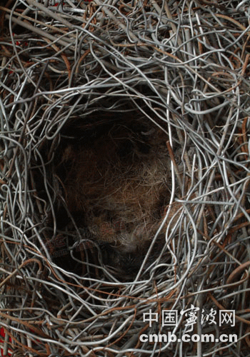 無獨有偶。記者在網(wǎng)上搜索了一下,發(fā)現(xiàn)原來北京奧運發(fā)生了同樣一件奇事:在國家體育場(鳥巢)建設工地,兩只喜鵲情侶與建設者同步,用同樣的材料,在同樣的地點,用鋼絲和焊條建成了一個“鳥巢”。喜鵲所建造的這只“鳥巢”,比網(wǎng)友luxiaowe工地上的鳥巢精致多了,簡直就是一個鳥的裝置藝術品。她以焊條為骨架,以鋼絲為紐帶,結構復雜、科學、巧妙,這只“鳥巢”的正中間,是鳥睡覺的小床。