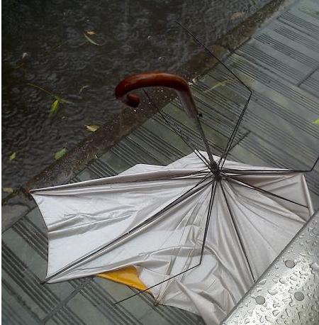天一論壇網(wǎng)友“芒果ā妹 ”:話說早上8點準時出門,到車站幾分鐘的路,突然在大廈拐角處一陣狂風暴雨,我的傘壯烈犧牲,全身上下沒一處干的地方。硬撐著到車站,風越來越大,好多人回頭看我,她們大概以為我是大無吧(寧波話,意思是頭腦不清楚)。好不容易到了車站,眾人那個眼光啊!傘沒了,做公交也沒用,到了車站還是要走的。打車,連個出租車的尸骨也咩看到。眼看8點15分了,還有15分鐘就要遲到了,趕緊打電話給老爸救援。敢死隊員還在睡夢中,一個命令下,也大概5分鐘多點該死對到過兩個紅綠燈,緊人多的要命的電梯,終于在8點29趕到單位。
