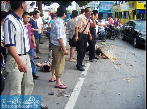 由于車速過快,這位青年先撞了正準備過人行線的買菜回家的阿姨,然后再撞了帶人的電動車.