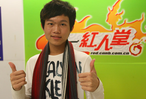 主持人:短信用戶135××××0191說:18歲就成功真是不可思議,有何成功心得呢?現在在寧波嗎?會不會搞個現場網友活動呀?
