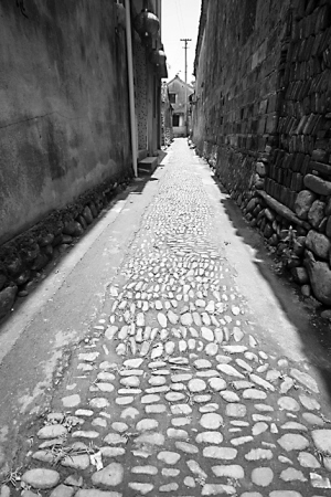 幾百年的老路大都是由鵝卵石鋪成的,歷經(jīng)歲月的磨練,變得越發(fā)有意境。這兩條路最寬處不過3米,而最窄的地方兩人通行必須貼面而行,在古鎮(zhèn)里隨意延伸轉(zhuǎn)折,好像兩條經(jīng)絡(luò)串聯(lián)起那些百年的老屋。在路的兩邊都有排水的溝渠,和兩條小路一起流淌在歲月之中。孩子們在小路上隨意嬉戲,老人悠閑地靠著老屋的門口,共享寧靜和安詳。