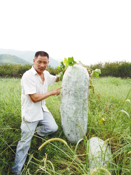 本報訊 昨天,奉化信義農業科技發展公司的老邢在農莊地里發現了一個巨型冬瓜,高106厘米、直徑約50厘米、重達40.6公斤。據老邢介紹,今年5月份,他在農莊地里種下了冬瓜幼苗,平日里除了澆水比較勤之外,也沒怎么施肥。這個大塊頭的發現令他感到非常意外。