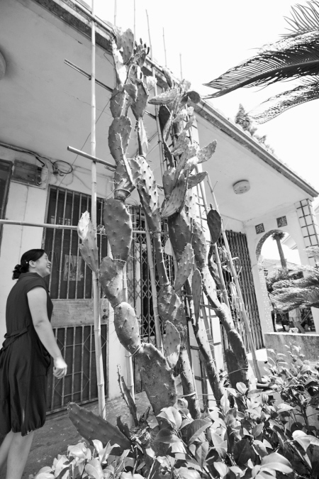 仙人掌的主人胡老伯已70多歲了,為了讓仙人掌更好地生長,胡老伯還特地搭了竹架子,讓仙人掌順著竹架往上爬。胡老伯說,這四棵仙人掌已種了10多年,看著仙人掌一天天地長高,他很開心。這四棵仙人掌每年都開花,開花時更美。近年,不斷有遠近鄉鄰慕名前來觀看,還有人出高價想買下它。