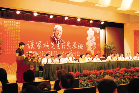 本報(bào)訊(記者沈朝暉 通訊員施 英)我國(guó)遺傳學(xué)泰斗、寧波籍中科院院士談家楨迎來(lái)百歲華誕。昨天,復(fù)旦大學(xué)舉行談家楨百歲華誕慶典暨遺傳學(xué)國(guó)際學(xué)術(shù)研討會(huì)。中共中央政治局委員、國(guó)務(wù)委員劉延?xùn)|,全國(guó)人大常委會(huì)副委員長(zhǎng)、中科院院長(zhǎng)路甬祥向談老發(fā)來(lái)賀電,全國(guó)人大常委會(huì)副委員長(zhǎng)蔣樹(shù)聲,全國(guó)政協(xié)副主席、科技部部長(zhǎng)萬(wàn)鋼,教育部部長(zhǎng)陳竺,上海市領(lǐng)導(dǎo),海內(nèi)外遺傳學(xué)專家和談老的弟子等各界代表參加慶典活動(dòng)。市委常委、副市長(zhǎng)余紅藝代表前往祝壽并在慶典大會(huì)上致辭。