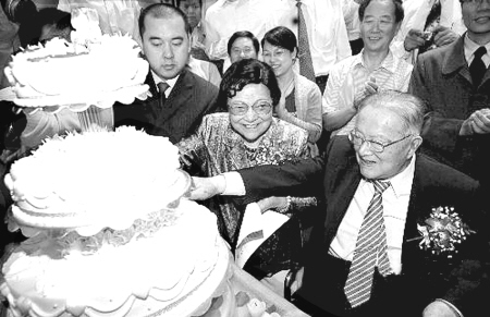 談老的夫人邱蘊(yùn)芳醫(yī)生也是寧波人,是在1973年照料病中的談家楨時(shí)建立感情而成婚的。這次在復(fù)旦大學(xué)舉行的談老百歲華誕慶典中,談老的夫人聽(tīng)到我們是家鄉(xiāng)的記者,就講起了談老的近況和他對(duì)家鄉(xiāng)的懷念之情。她說(shuō),談老以前無(wú)論說(shuō)普通話還是上海話,包括給學(xué)生上課和接受中央電視臺(tái)的采訪,都帶著濃重的寧波口音,但現(xiàn)在他健康不好,已不能開(kāi)口說(shuō)話。“前幾天,我告訴他,大家要給他過(guò)百歲生日,問(wèn)他高不高興。他拉緊我的手,點(diǎn)了點(diǎn)頭。我又跟他講,家鄉(xiāng)的代表也會(huì)來(lái)參加。我看到他的眼皮動(dòng)了幾下,臉上露出了笑容。”談夫人說(shuō),談老始終忘不了自己是寧波人,對(duì)寧波發(fā)展很關(guān)心,報(bào)紙上有寧波的消息,他都仔細(xì)看。