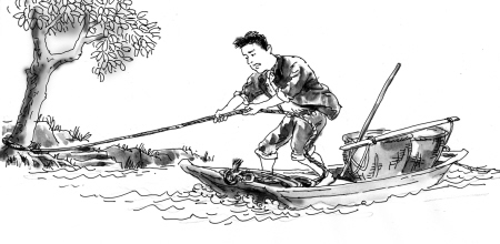 再一次見到這拉拉渡是在雨后的一天。連日大雨,河水暴漲。因為附近開閘放水,河流湍急。只見那拉拉渡被水沖到河的中央,船首尾的兩條繩索繃得緊緊的,在急流中時隱時現。此時此景,我突然想起古詩中“春潮帶雨晚來急,野渡無人舟自橫”的句子來。眼前這拉拉渡,不是那無人的渡口、自橫的船舟嗎?