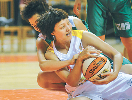八一廣博女籃的中鋒張曉妮堪稱勞模。昨天的比賽打完三節半,她才被教練換下去歇了一會,這時場上的她明顯體力不行了,一次籃下進攻在對方的球員干擾下球投丟了,人也跑不動了。幾分鐘后,她卻又被換上場。張曉妮全場打了近37分鐘,拿下22分5個籃板,還有兩次助攻。而且,八一廣博的5名先發主力隊員都打了30多分鐘,王凡在全場也只休息了不到5分鐘。場下隊員,只有柏華和陳麗新還能上場頂一頂。