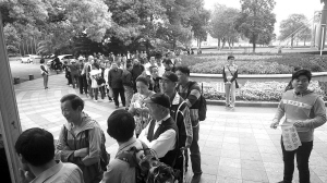 | 寧波影都專線上客點乘客排起了長隊。 |