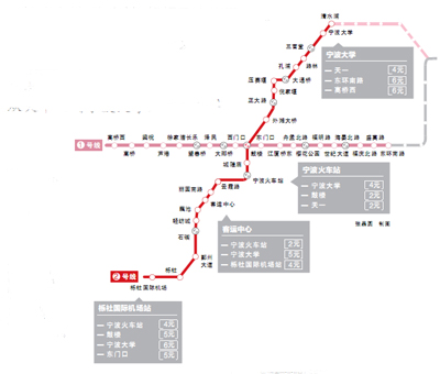 2號(hào)線一期工程是城市西南—東北方向的骨干線路,西起櫟社國際機(jī)場站,東至清水浦站,經(jīng)過鄞州、海曙、江北、鎮(zhèn)海四個(gè)行政區(qū),串聯(lián)機(jī)場、客運(yùn)中心、火車站、北高教園區(qū)等大型客流集散點(diǎn),是軌道交通線網(wǎng)中貫通西南至東北的重要骨干線。