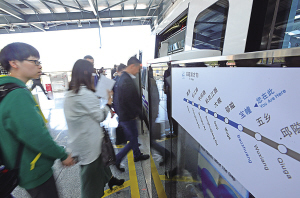 | 昨日,媒體記者從寶幢站上車探營。(記者 徐能 攝) |