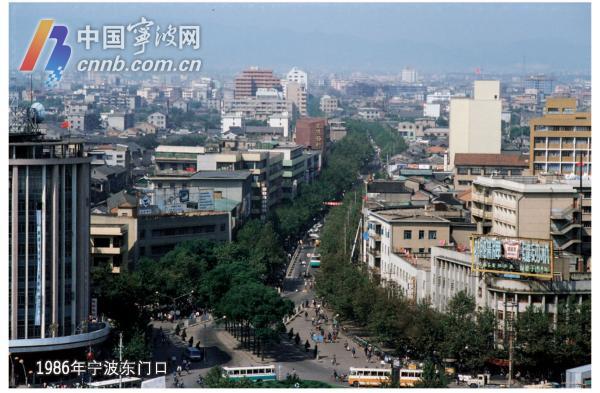 “這是我1978年拍攝的東門口,那時(shí)經(jīng)濟(jì)還很落后,全寧波只有幾輛公交車,我想用三輛公交車同框體現(xiàn)現(xiàn)代化生活場(chǎng)景。”