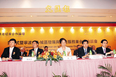“2007甬港經(jīng)濟(jì)合作論壇”由寧波市政府和香港貿(mào)發(fā)局聯(lián)合舉辦,香港《文匯報(bào)》作為該論壇的支持單位,浙江省委常委、寧波市委書記巴音朝魯和市長毛光烈專程來港出席了開幕式。