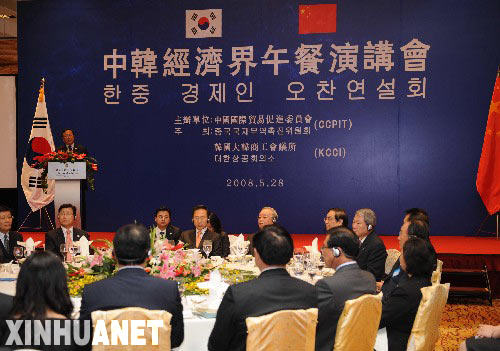 5月28日,來華訪問的韓國總統李明博出席中韓經濟界午餐演講會。 新華社記者高潔攝