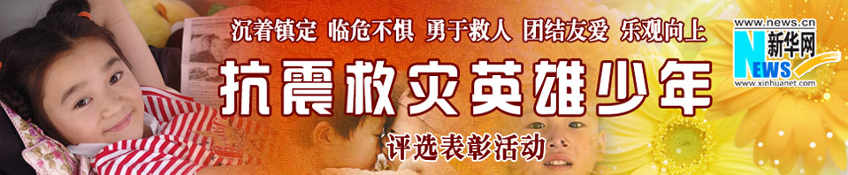 表彰一批“抗震救災英雄少年”。(6月7日《人民日報》) 5月12日14點28分那一刻,震動刺穿了平安與幸福,帶來了災難與厄運。然而,在血與淚的悲痛中,在生與死的界限中,這些年幼的孩子,卻用堅強和勇敢,詮釋著生命的勇氣,閃耀著人性的光芒,涌現出了一大批少年英雄,讓我們一次次熱淚盈眶,讓我們一次次被淚水洗滌心靈。