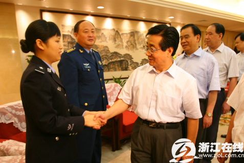 浙江省委書記趙洪祝等領導在參觀完抗震救災圖片展之后,親切會見了抗震救災英模事跡報告會一行。